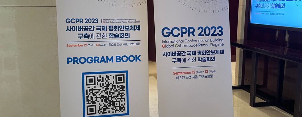 2023 GCPRNCSL2023년 9월 12일1분 분량바로가기 >사이버공간 국제 평화안보체계 구축에 관한 국제 학술회의사이버안보 위협에 대한 국제적 책임일시 : 2023. 09. 12(화) ~ 13(수)장소 : 웨스턴 조선 서울 그랜드볼룸주최 : 국가보안기술연구소, 국가정보원, 국가안보전략연구원