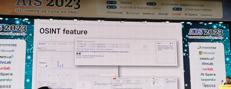 AIS 2023NCSL2023년 11월 2일1분 분량바로가기 >사이버위협 대응 인공지능 보안 컨퍼런스 2023일시 : 2023. 11. 02(목)장소 : 한국과학기술회관 국제회의실주최 : 데일리시큐후원 : 한국인터넷진흥원, 한국정보보호산업협회
